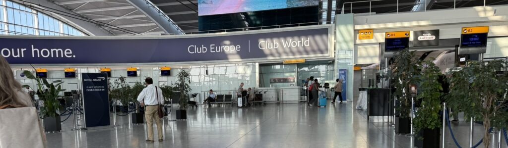 Thanks to the flighty app, I already knew my flight was going to leave from C gates, so I knew I was going to head as quick as possible to the lounge at B gates, rather than the two in the main terminal, which are normally somewhat busy. This was going to be my first time checking in through the new “Club” check-in area on the far left side of terminal 5. Up until now I’ve always checked in at the first wing with my gold status, but now I don’t have that status and flying in business class, I’d have to go to the club section to check in if I wanted to.