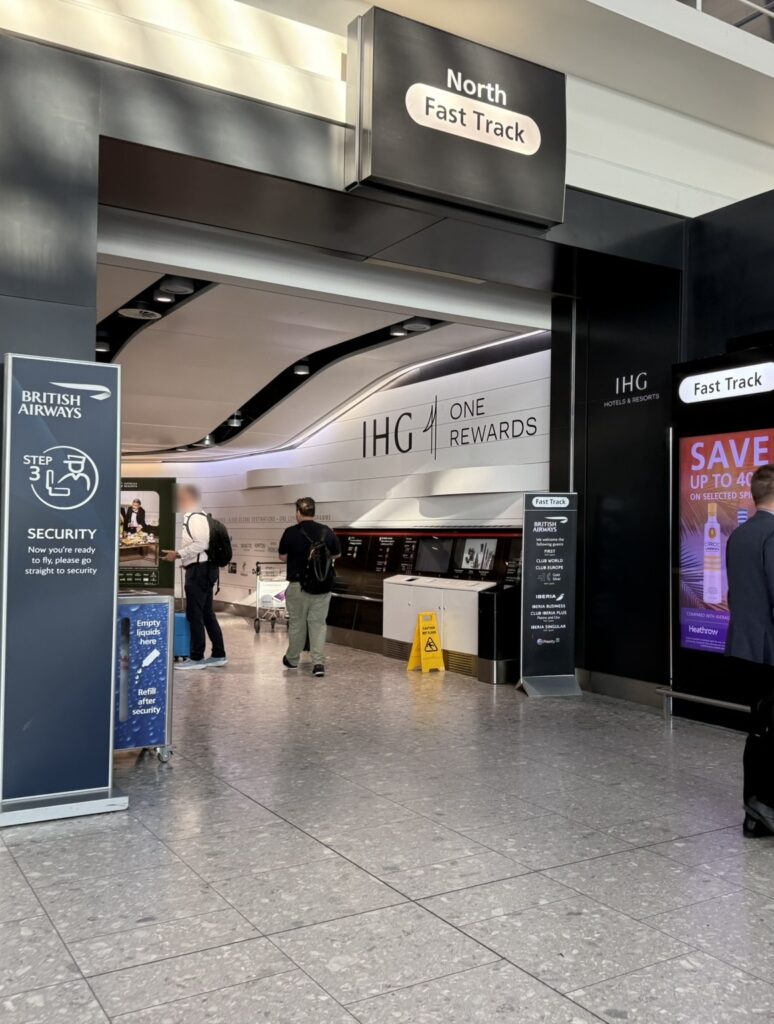 I hadn’t noticed before, but there was a dedicated fast track lane right next to the club check in area. The other fast track lanes are alongside the normal security entrances. I headed through this dedicated fast track lane to be somewhat disappointed by just kicking you out into the normal security area, just to a dedicated queue line for a couple of machines. There was only one machine running and it was quite busy, so there was someone there frantically trying to move people to other lanes in the normal queue to try and speed things up. Not very “fast” track. I got through security eventually, trying to ignore the people who clearly have never been on a plane before, then headed straight down to the transit to terminal 5B.