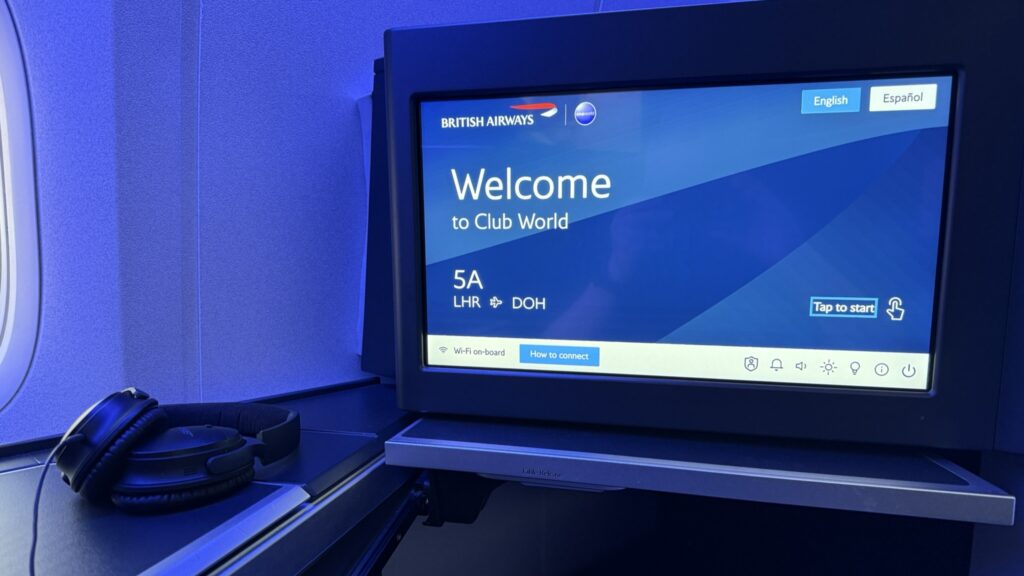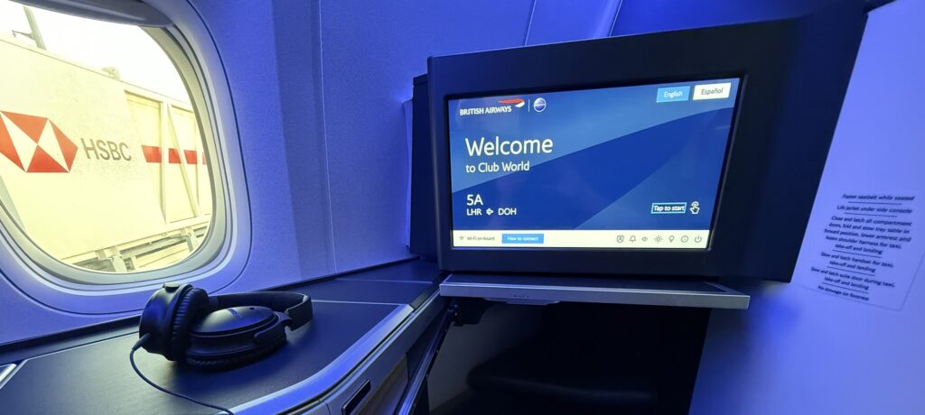As this was booked in business class and it was a 777, I had a club suite to sit in, which is always nice. I booked the furthest forwards and furthest left, in this case 5A, as there are four rows of first class in front. They offered me pre-flight champagne, which I took with a hot towel. Then the menu came round, and they took my order before take-off. As this was an overnight flight and I’d eaten in the lounge, my intention was to sleep as much as possible, so only a drink and a light snack after take-off for me. I planned to follow this by sleeping as long as possible and not be woken for breakfast on landing. The lady serving me commented that I was a very easy customer. I settled down to a film, eventually I felt sleepy and laid down on the fully flatbed to get some sleep. I still maintain the club suite is one of the better seats available in business class, you can get very comfortable in it and lie on your side with your knees tucked up if you want to. Also, the pillow was particularly fluffy, which made it very comfortable. I closed my door and went to sleep for the night. I woke up about an hour before landing. After changing out of the pyjamas, that I brought with me, (Qatar ones I think), they don’t give you pyjamas in business class on British Airways, I grabbed a juice and headed back to my seat for landing. The crew were very friendly and helpful, and the flight was very pleasant, I’ve done plenty of these flights before so nothing remarkable to report here.