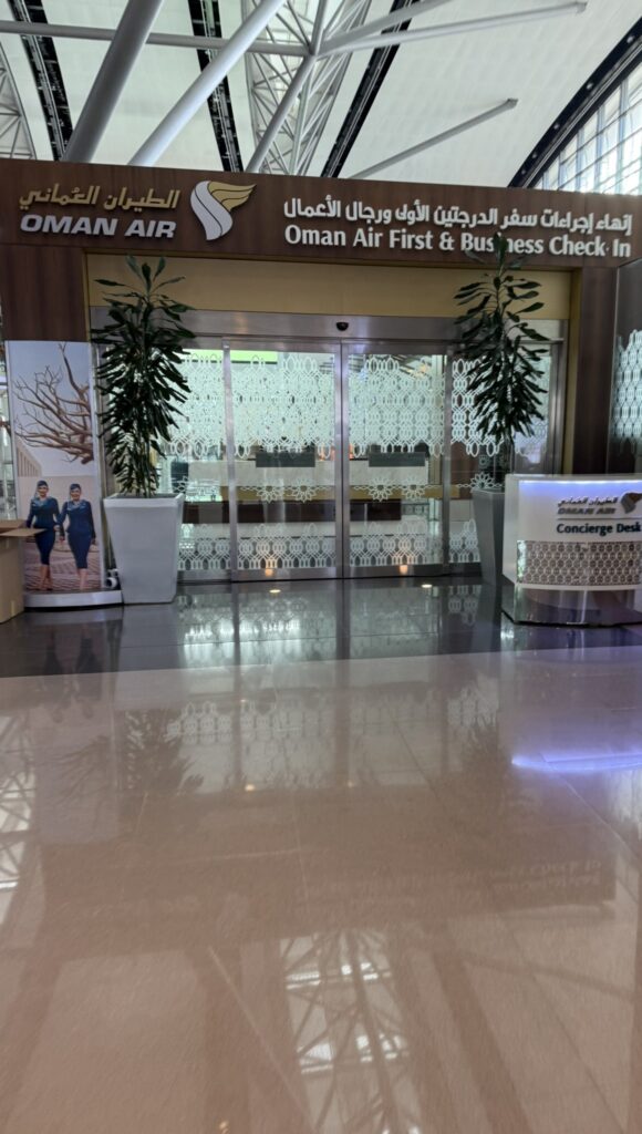 Having been to Muscat airport once before, I knew that there was a separate business class check-in area. When the taxi took me to the airport, I asked him to drop me at the first door, which was clearly indicated as business class check-in. When you went into the terminal, you walk into a general area that’s open across to all the check in areas. To the side there’s a door that leads you into a walled off area that is the business class check-in area. I went in here and there were three desks that were manned, but all were with customers. Unlike all the other locations there was nobody here to greet you, give you any kind of direction or to offer for you to sit down and wait. You just simply had to queue up. Not that I’m complaining, but it’s just interesting to see what different companies do. It wasn’t a long wait and soon I was checked in for my next flight. The business class area leads straight to the direct immigration and security area, just for business class, and in no time, I was airside ready for my flight. There are two main major lounges at this airport; the one I visited last time which was when I was flying with Qatar, and the Oman air Lounge. Naturally, I was going to the Oman lounge as I was flying with them, so I headed that way.