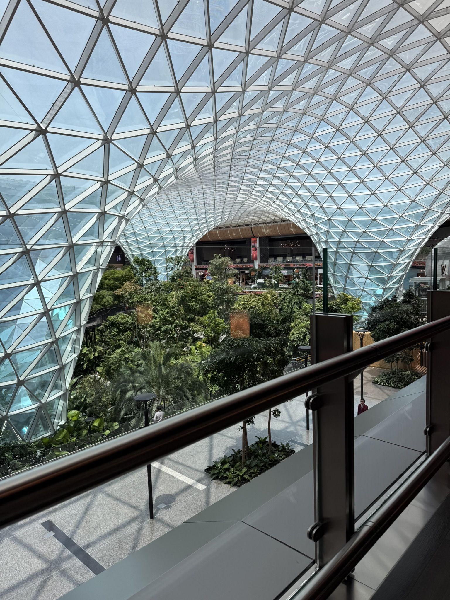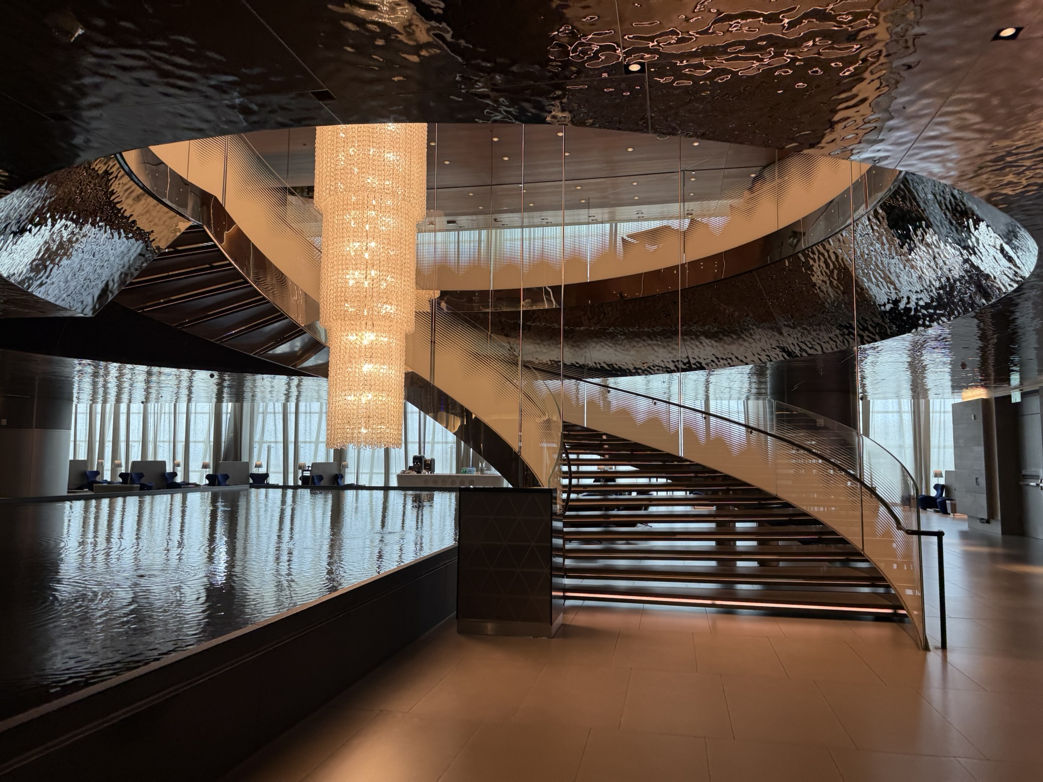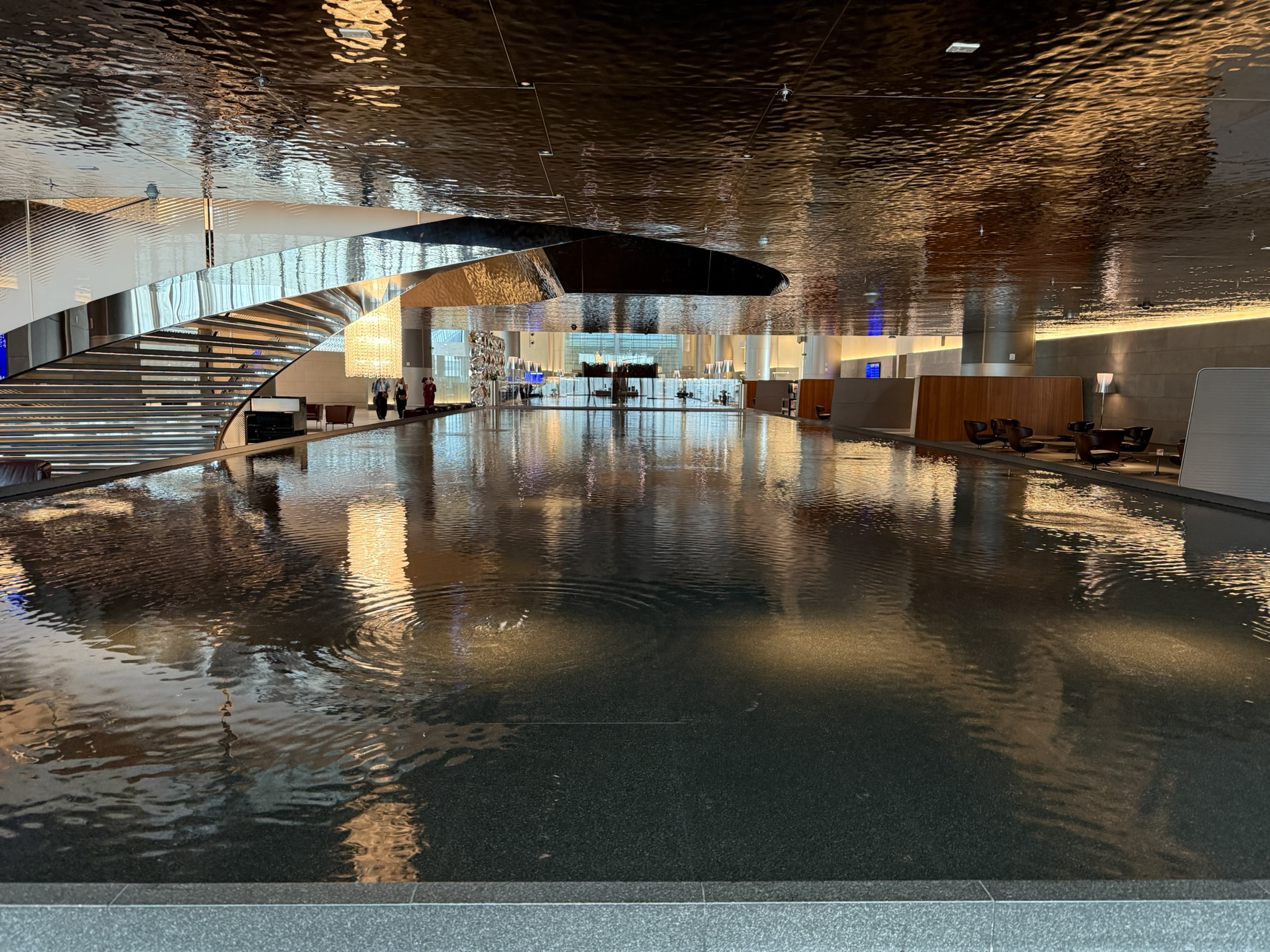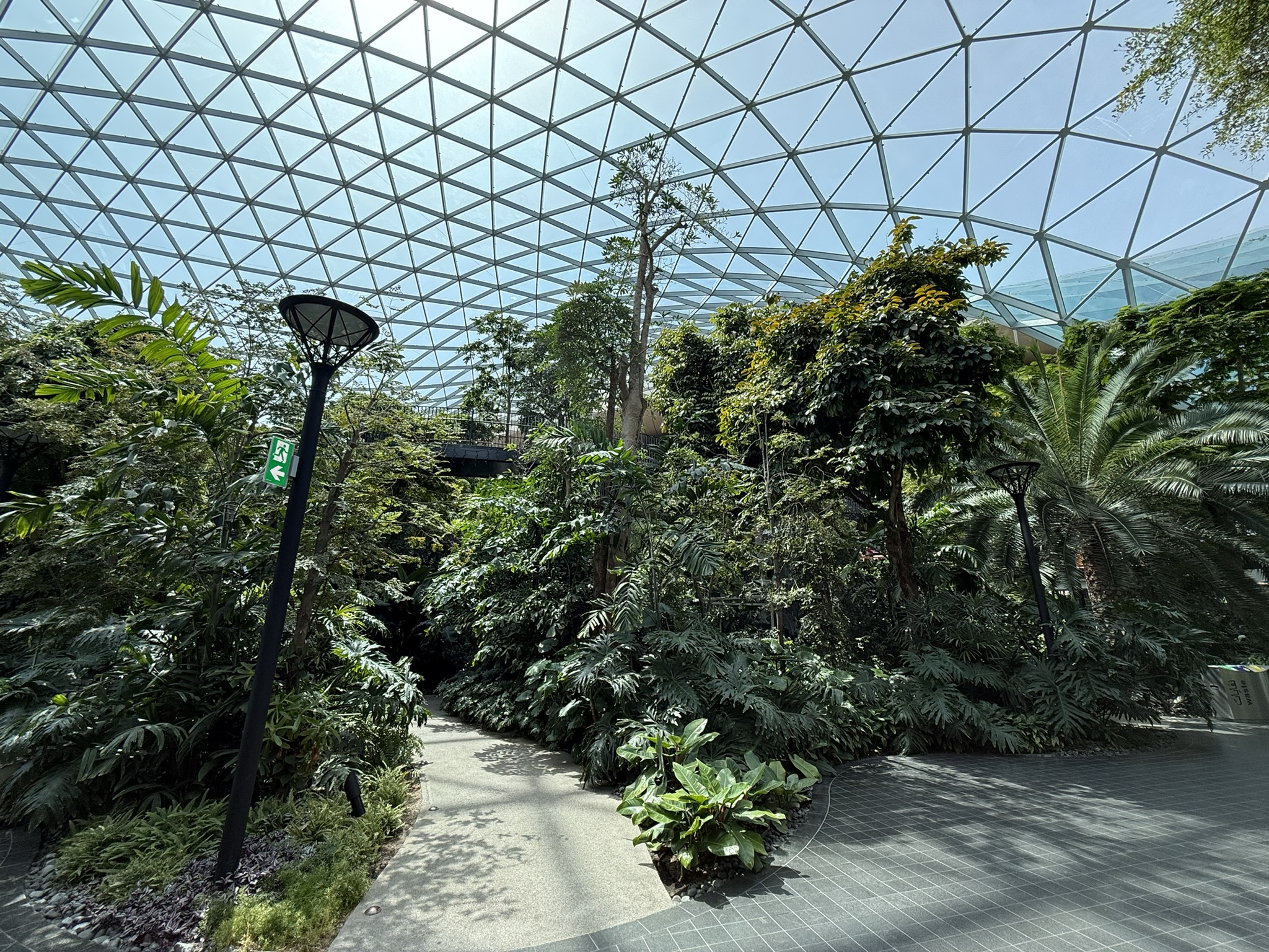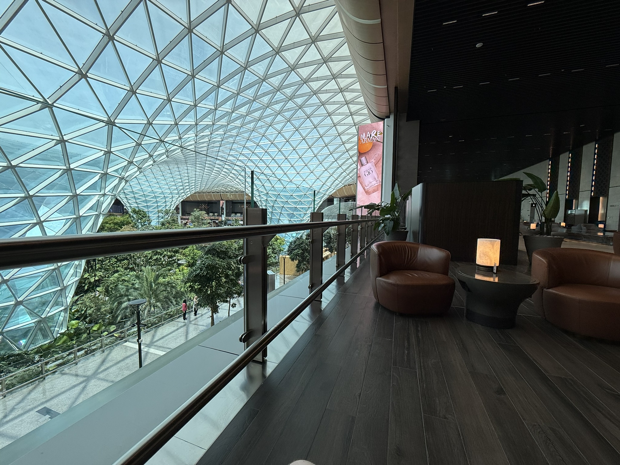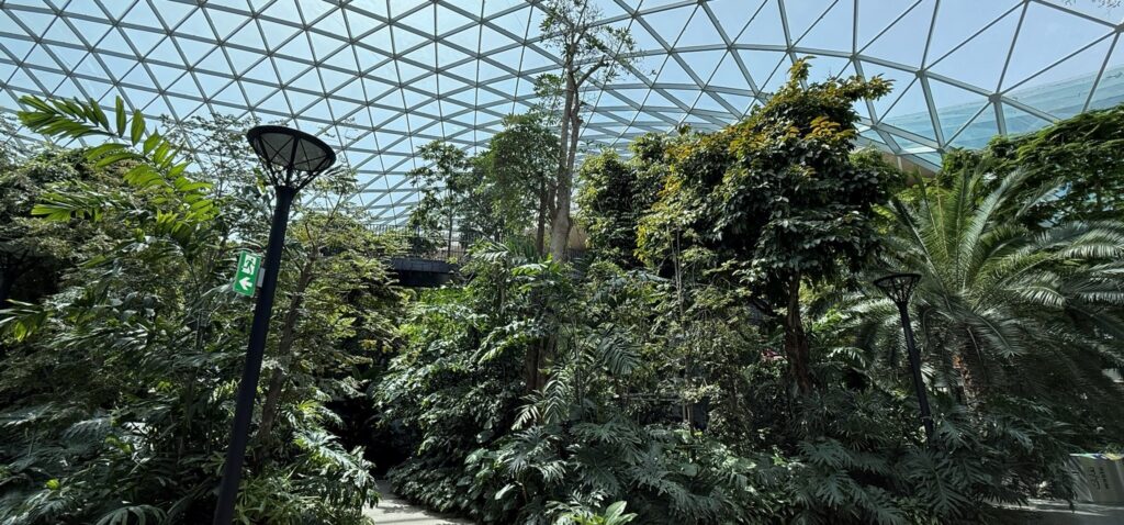 Next morning, I headed back to the airport and to the dedicated business and first-class check-in drop-off point, that I was now very well acquainted with. As soon as I walked through the door my bag was taken off me and I headed to a business class check in desk, where they don’t have seats like first-class does. That seemed to be the only difference between the two sides. I was soon checked in and heading straight through to the dedicated security and immigration at the end of the business class check-in aisle. Unlike first-class, business class does not lead you directly to a lounge but spits you out in duty-free so that you can go shopping before you head to the main concourse. As my flight was now significantly later than my previous scheduled flight, I had a lot of time to kill that day. I had spent the morning working in my hotel and pushing the check-out limits to its maximum possible time before heading back to the airport. But I still had over 3 hours to kill. I decided I was going to have lunch at the airport and then dinner later on the flight home made sense, as I would be landing evening time in the UK. This time I headed it straight up to the transit and went straight to C-gates, where the Orchard is, and went up to the south Lounge that overlooks the Orchard. This is a wonderful lounge space to go and sit in for some time to kill. I found some snacks, a drink and they even offered me table service in here. Given the situation in the Middle East, particularly the attack on Qatar, and the fact that there are no European airlines flying to the airport, the airport itself was extremely quiet. I think I were about 10 people in this particular lounge at the time. I suspect the lounge could easily have handled several hundred people without a problem. So, they were very happy to get me table service and bring me anything I wanted. I found a nice spot overlooking the garden where I could relax for a bit.