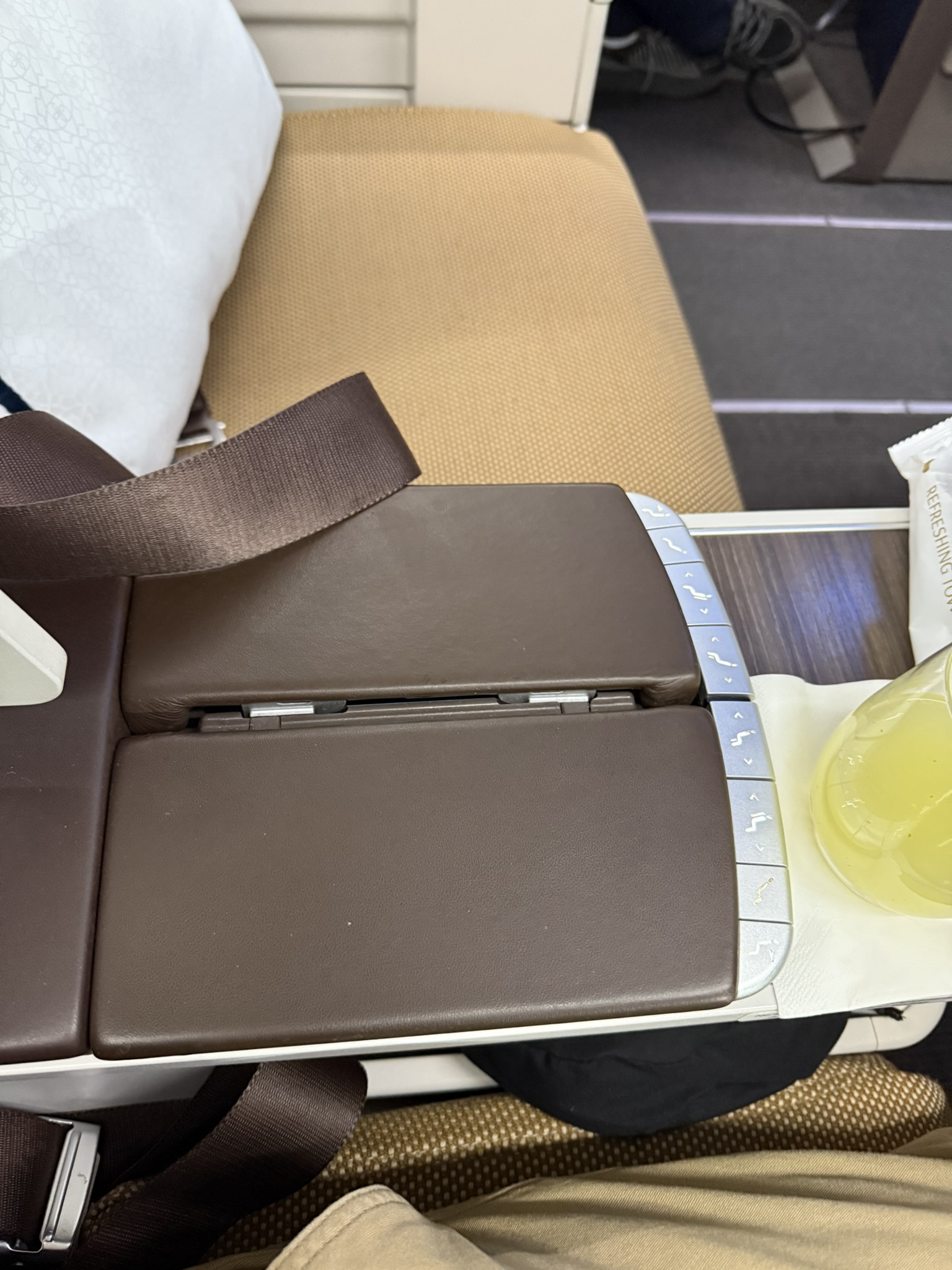 Again, it wasn’t long in the gate area before boarding and I headed down the ramp. This time I was sitting in 1K, the window seat on the right of the aircraft in the front row. However, these seats were different. Despite being a short haul aircraft, I would say these were almost long-haul quality seats. There was a massive screen fixed in front of me, a nice dividing wall between me and the person next to me, which gave some nice added privacy. There was storage down beside me under the armrest, a remote control for the screen, and a complicated leg rest system, that gave support to your feet in various different ways. The service itself was again identical to all the other short-haul trips, lime and mint drink, towel, date and an Arabic coffee. Again, I was offered the light meal, but I’d again eaten elsewhere so turned it down and just went for a drink and some nuts again. I’m not quite sure how many lime and mint drinks I had during this entire trip, it was quite a few, but they were delicious and very refreshing. The seat was contained in its own solid back, so it reclined by going forwards and down, meaning it didn’t affect the passenger behind you with your recline. This meant I have no qualms whatsoever about reclining fully, relaxing and enjoying my flight, I watched something on the screen and they even had full noise cancelling headphones, which was impressive for this kind of flight. The flight itself was again another hour long flight and quite uneventful. Landing a little bit late to Dubai, which was no problem at all for me. On this occasion, the hotel offered to pick up the airport and the price they were charging was actually less than Uber were charging, so I opted for it. This meant there was a guy with a sign with my hotel name on it waiting for me and he took me straight to the hotel door and I didn’t have to touch my suitcase from the airport to my room.