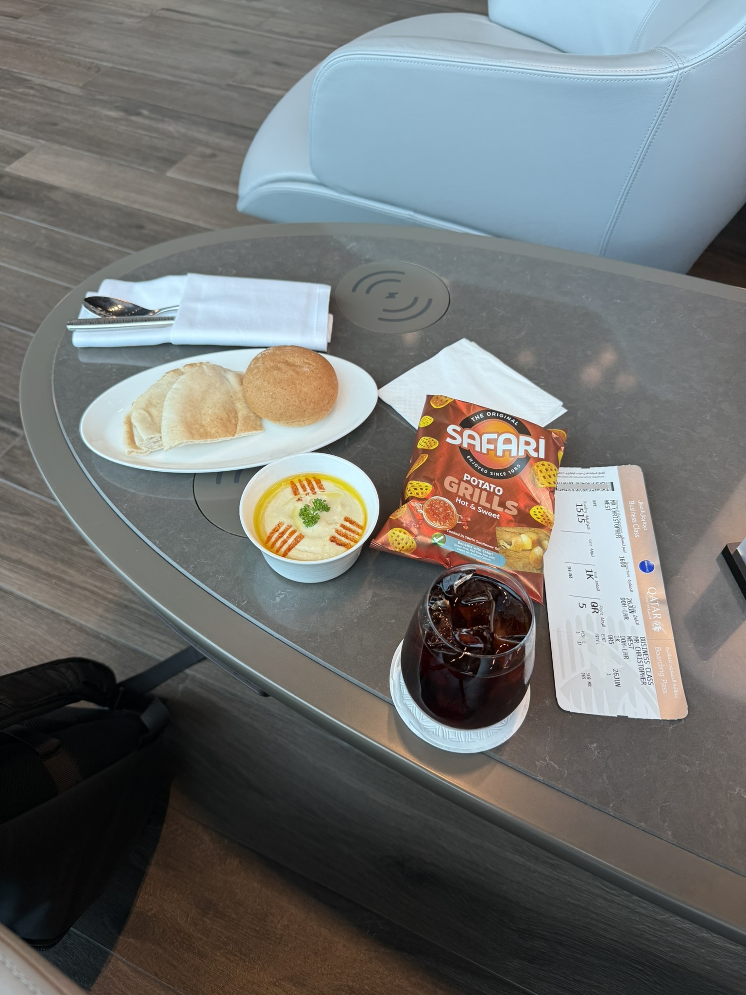 My final short-haul trip was a last positioning flight to get myself to Doha for my final flight home, again with Qatar, paid for with Avios and again in first class. Although I wasn’t expecting the same experience at the airport that I’ve had at Doha previously. Again, the hotel offered me a car to the airport, even though Sharjah was further away. Still, it was significantly cheaper than the price of Uber, so I went with that option. The car met me at the hotel at checkout time and took me straight to the airport. As mentioned previously, Sharjah is a small regional airport which seems to be a hub for Air Arabia. Upon arrival you are directed towards a small security scanning machine and then check-in was split into two zones, Air Arabia to the right and all others to the left. As soon as I walked in Qatar was the first airline I saw and the first desk on the Qatar area was the first-class check-in, which had no queue. Once checked in I was able to head to “the lounge” as it was named, because it is the only lounge in the airport. Still, I was quite pleased to find there was any lounge at all given the size of this airport. The lounge itself was simple and pleasant, quite a good range of food on offer, some of it putting British Airways to shame with the nice range of buffet food available. But this time it was a little too early for dinner, the plan was to eat when I arrived in Doha. So, I grabbed a drink and relaxed in the lounge until it was time to go to my flight. I then headed down, boarded and was greeted with exactly the same service as all my other short-haul flights. I sat down with my lime and mint one last time. A fairly uneventful flight back to Doha and this time when I arrived, I didn’t need to fly out again straight away, I was going to the hotel for the night. However, I was going to check one thing first.