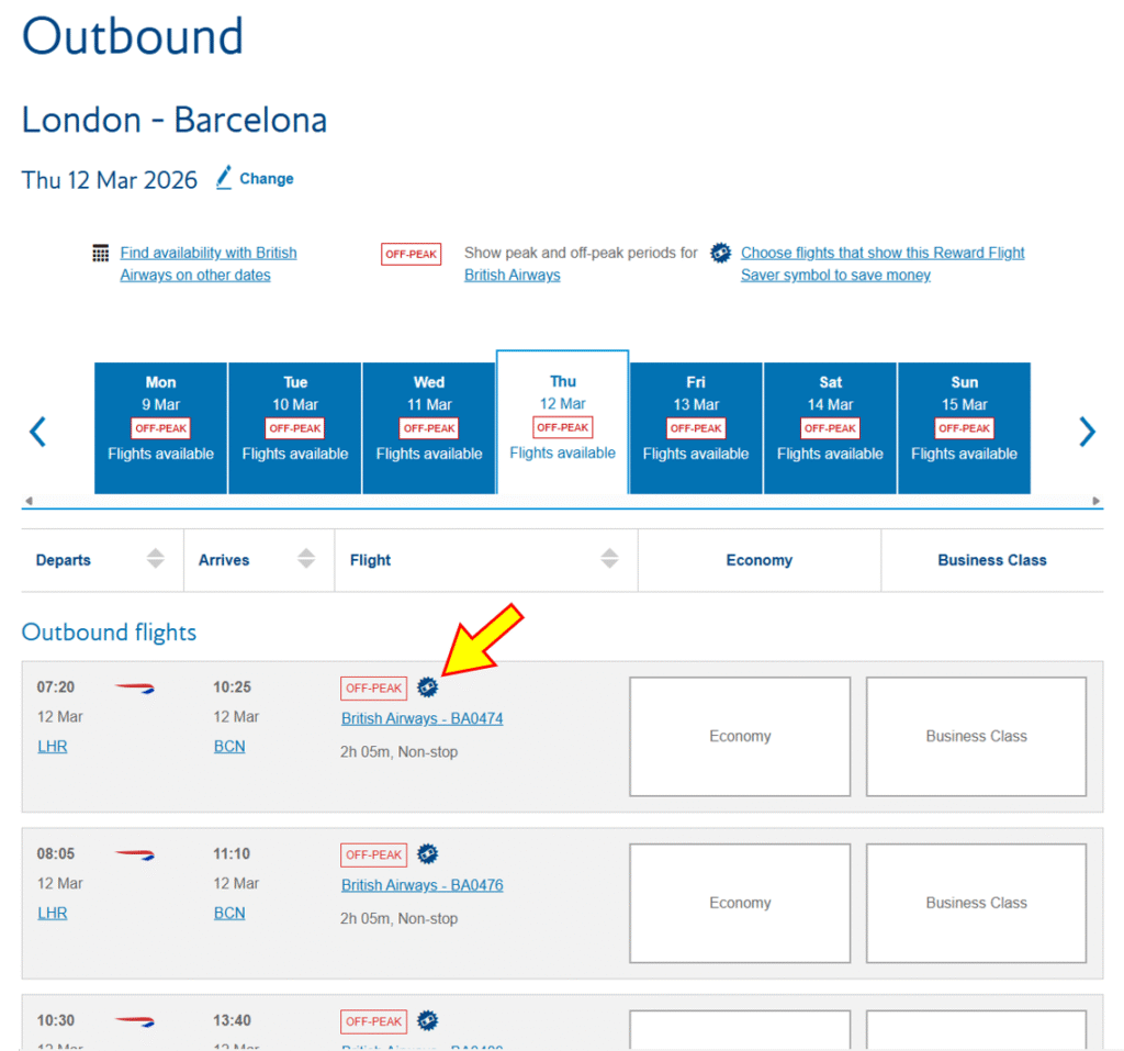 On the next page choose your flights and you’ll see a calculation of the bottom of your payment options. You need to look for the flights with the “reward” symbol on them.